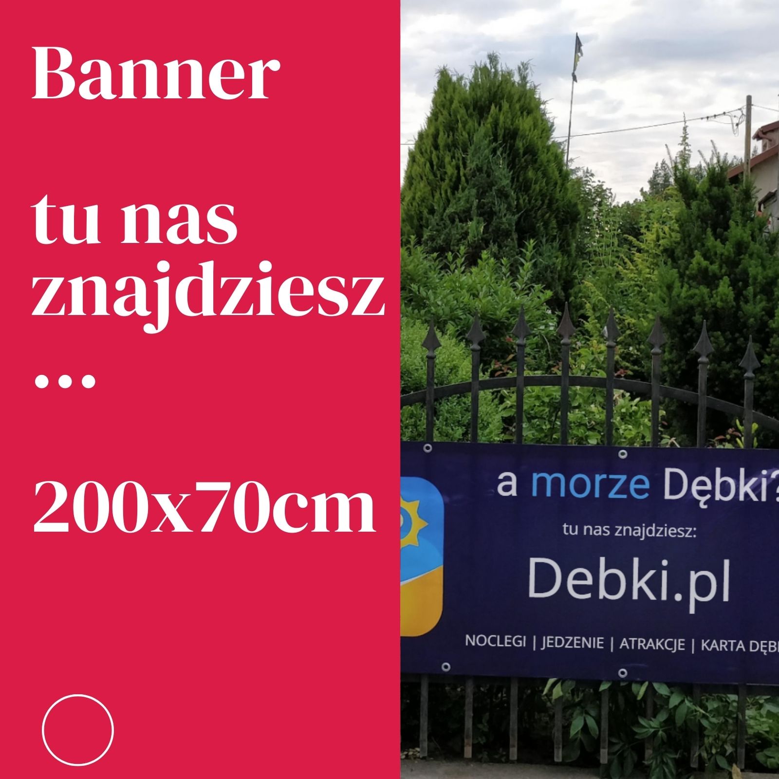 Baner reklamowy 200×70 cm „Tu nas znajdziesz”
