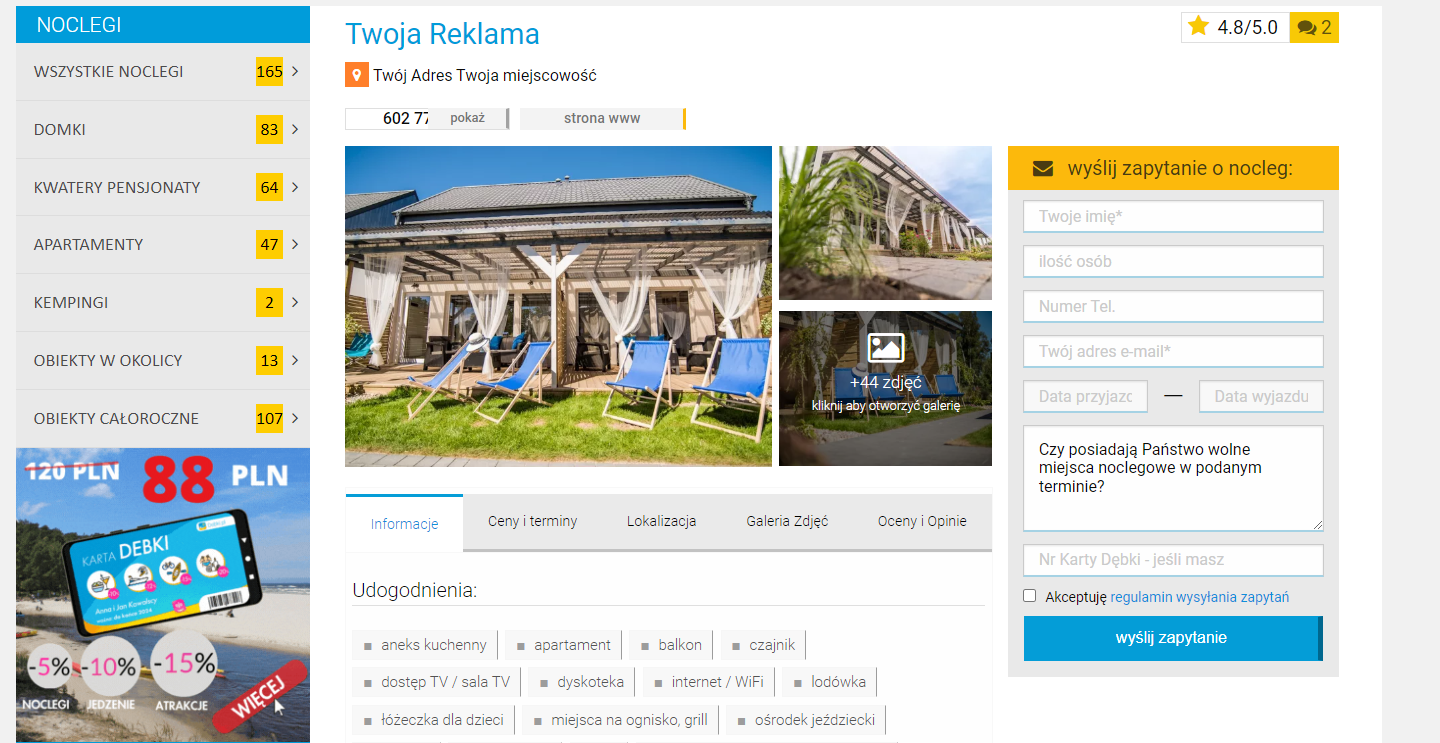 Kupując reklamę Twoja oferta będzie się znajdować w dwóch działach: